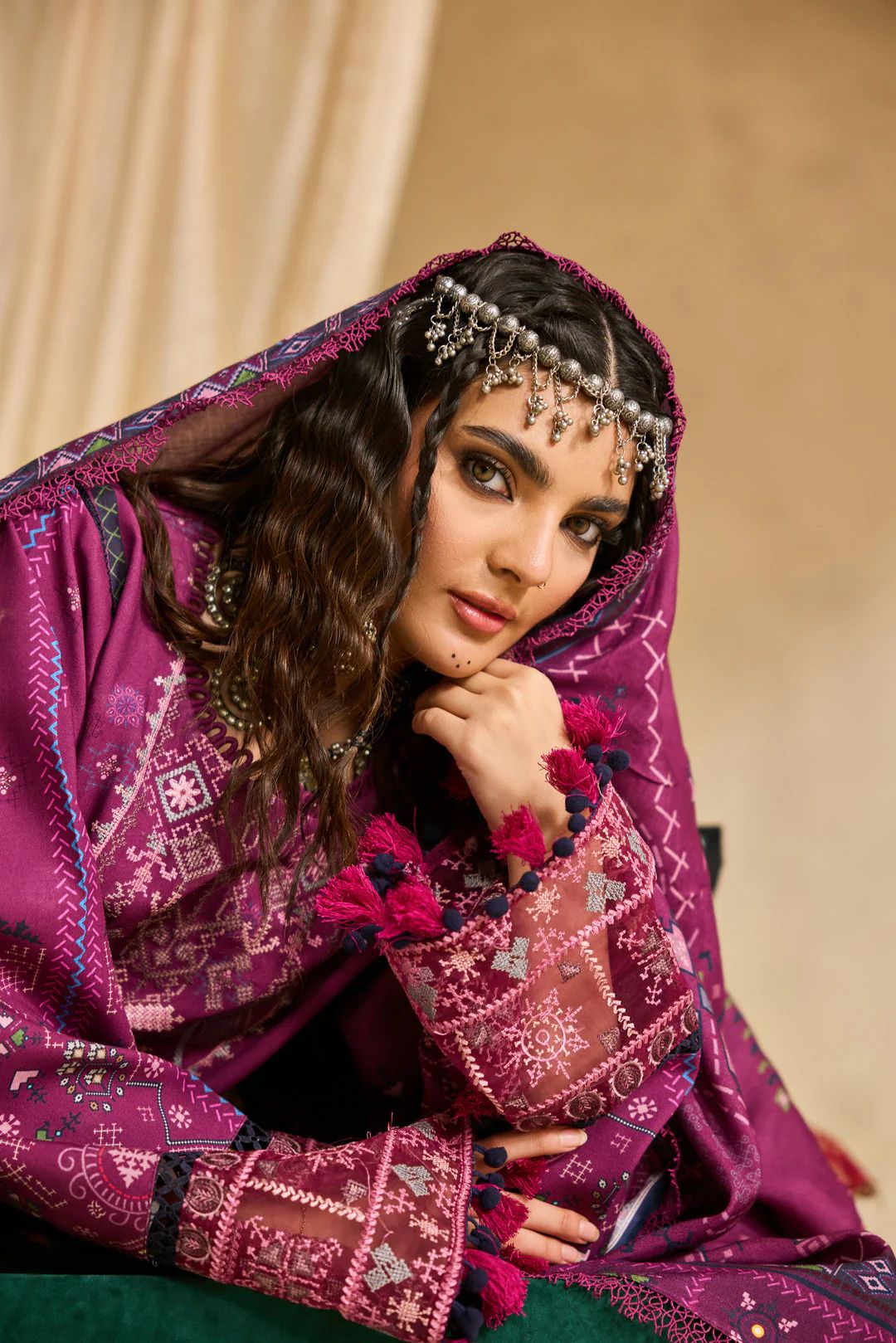 Paired with a digitally printed khadi shawl, this ensemble provides warmth and traditional winter charm, making it ideal for everyday wear as well as casual winter gatherings. The dyed trousers complete the look with a clean and comfortable silhouette, allowing the detailed print and embroidery to remain the focal point. Designed with a flattering length and relaxed fit, this outfit delivers effortless winter elegance with a classic appeal.