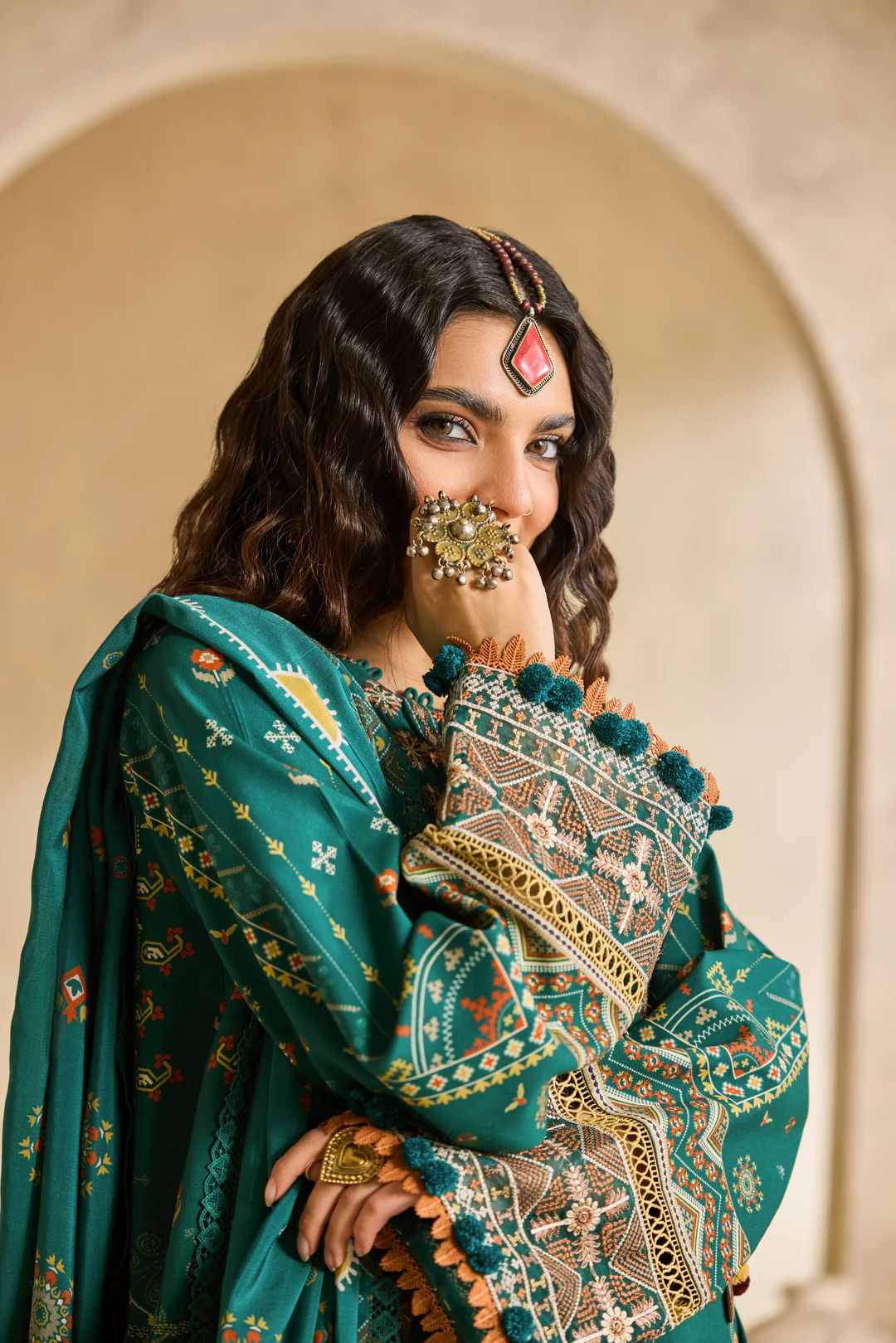 This elegant 3-piece ready-to-wear winter suit from Linen by Florent features a striking blend of rich tones and intricate traditional detailing. Crafted from premium linen, the digitally printed shirt is enhanced with delicate embroidery on the front, complemented by embroidered borders on both the front panel and sleeves that add depth and refinement to the design. The printed back and sleeves create a cohesive flow, resulting in a look that feels both graceful and timeless.