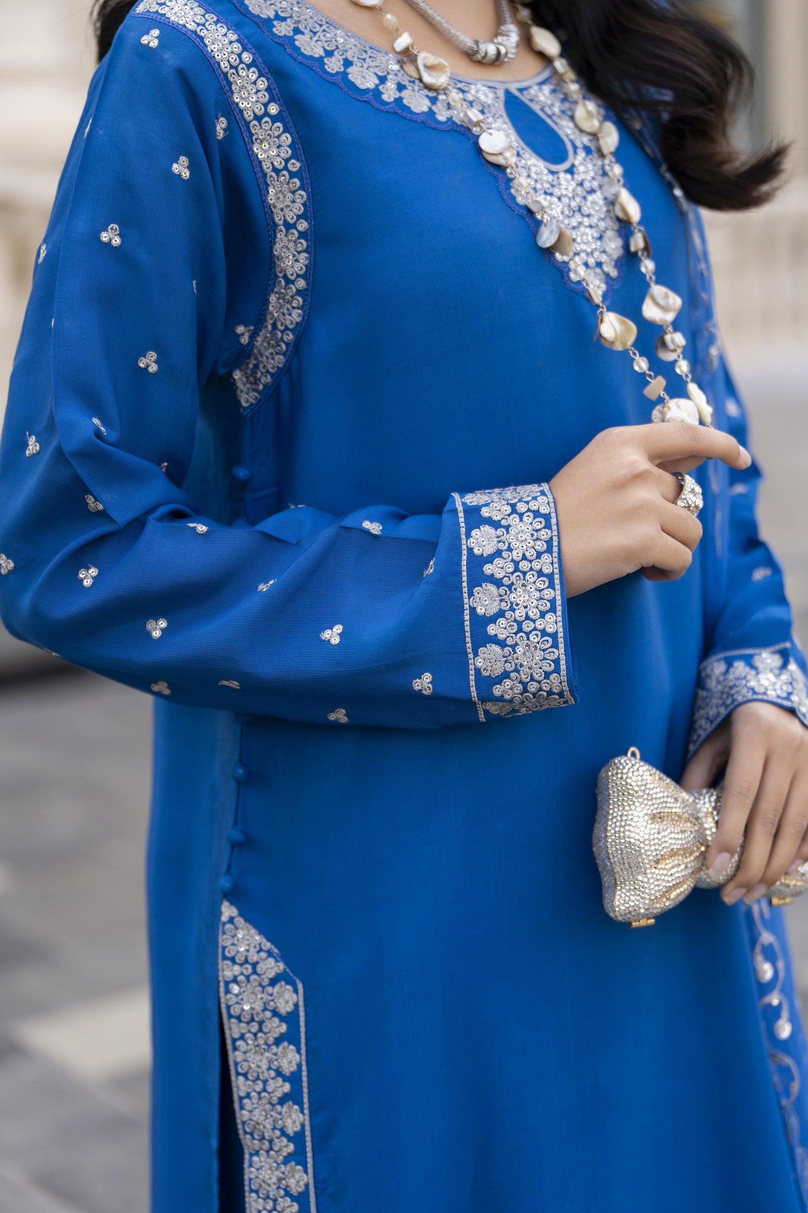 This design is ideal for customers searching for a Pakistani embroidered long shirt suit in the UK, perfect for Eid celebrations, festive occasions, family gatherings, or elegant evening wear. Style it with statement jewellery and heels for formal events or keep accessories minimal for a polished daytime look.