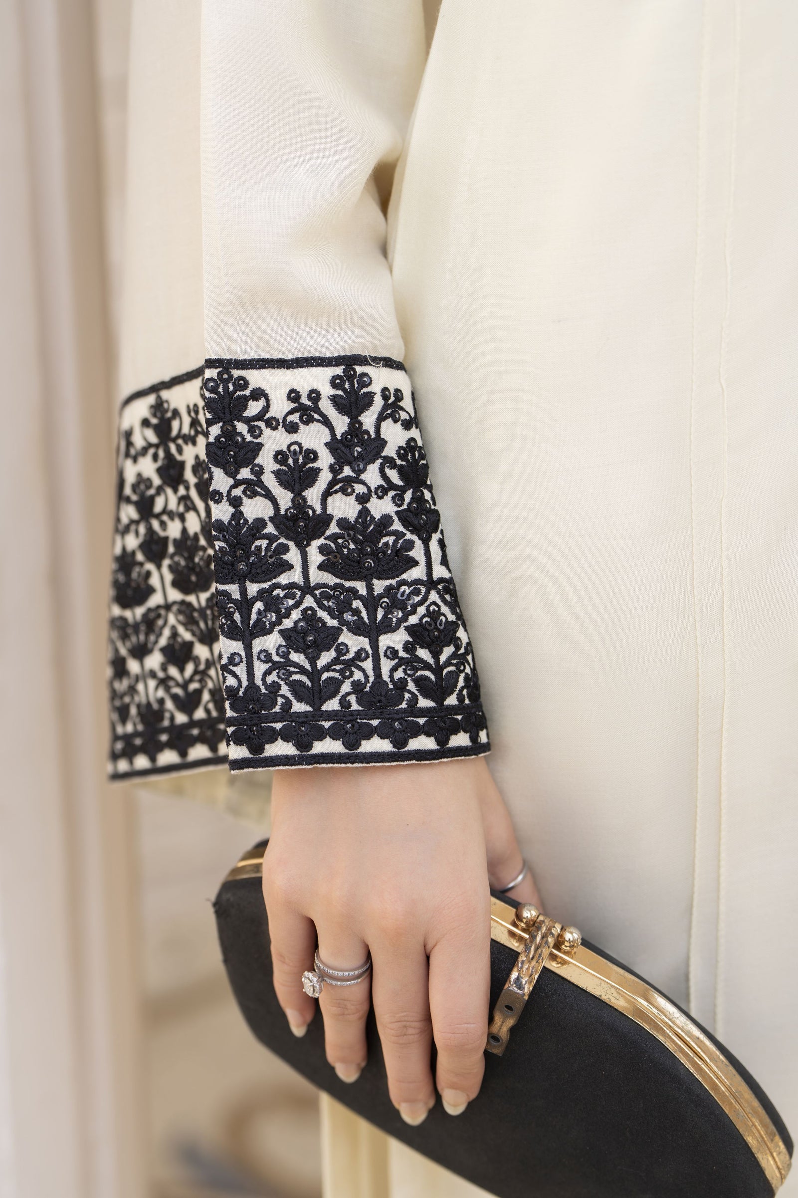 A timeless winter essential from Linen Aura by Miski, this 3-piece ready-to-wear outfit blends understated luxury with effortless style. Crafted from premium linen in a soft cream shade, the shirt features elegant embroidered cuffs and a body lining for added comfort, while the sleeves remain unlined for a graceful drape. It is paired with embroidered trousers that complement the refined look and a chiffon dupatta enhanced with delicate lace edging. Perfect for women who appreciate minimal elegance and warm sophistication, this design embodies comfort, charm, and winter-ready refinement.