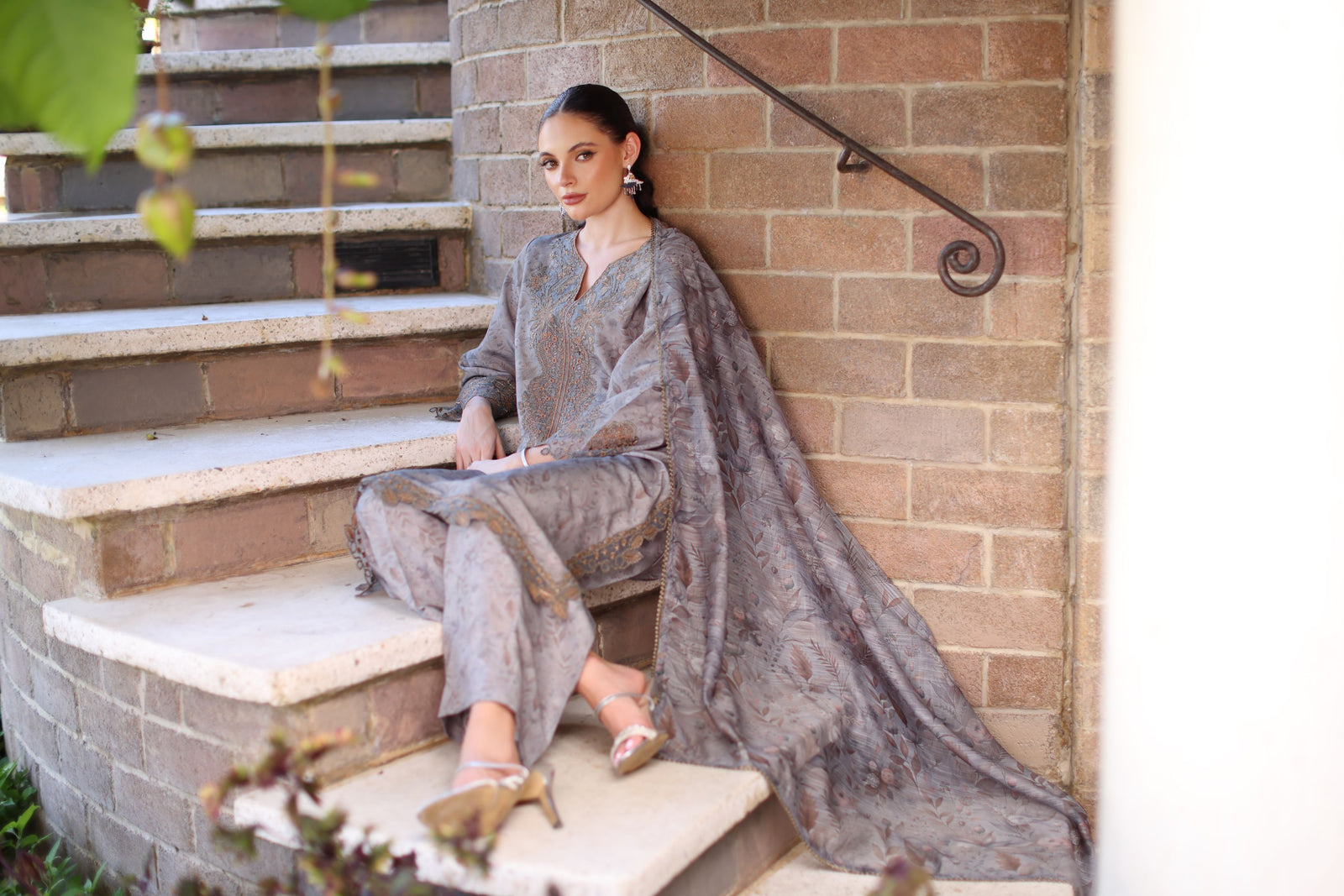 Calm, refined, and effortlessly wearable, this design from Serene by Mohagni reflects understated elegance tailored for everyday winter wear with a polished finish. Crafted in a printed blended khaddar fabric, the shirt features delicately embroidered patches that add texture and subtle detailing without overpowering the overall look.