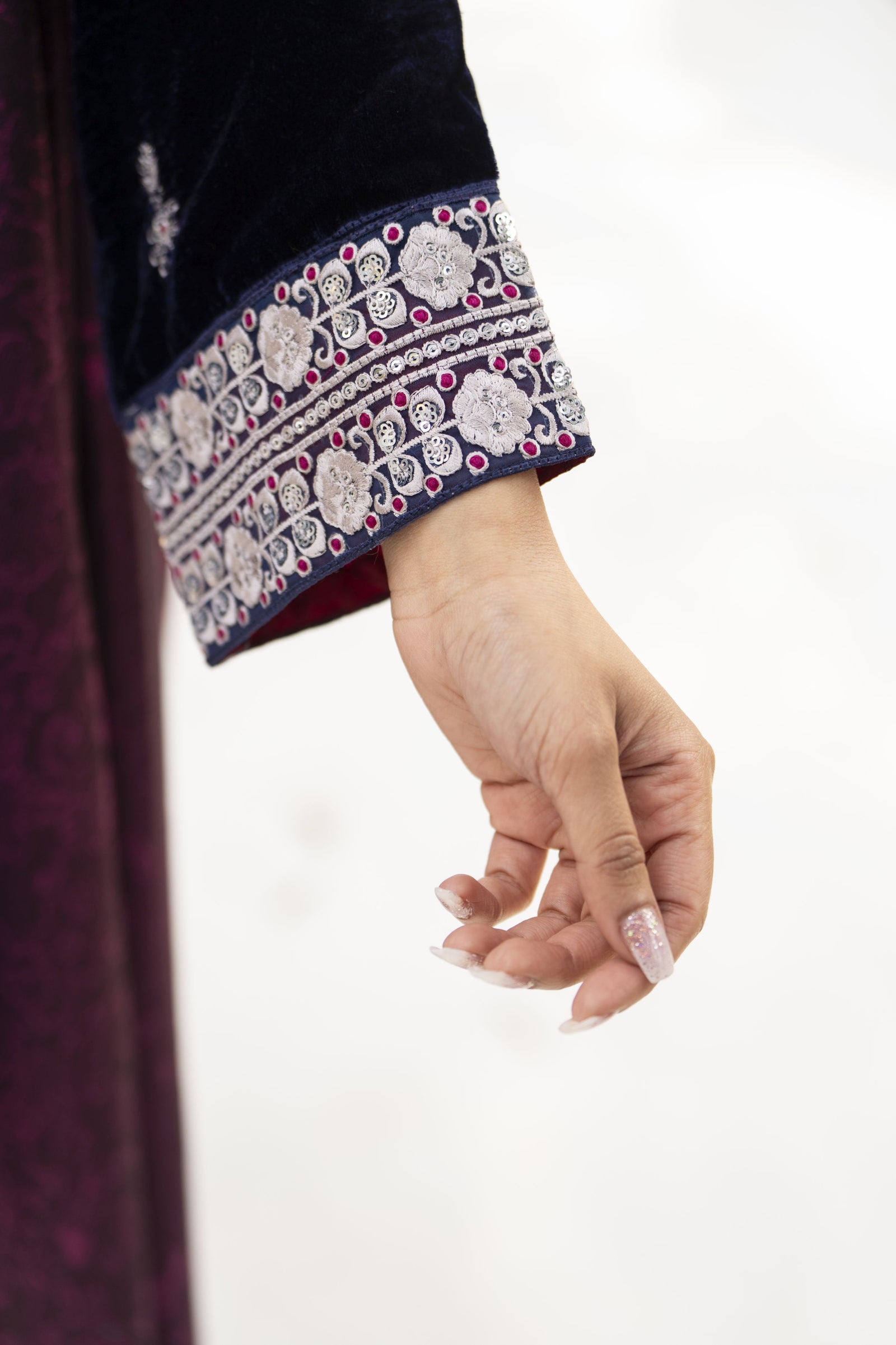 Perfect for winter evenings, festive gatherings, and formal occasions. Pair with silver or pearl accessories for a graceful, elevated look.