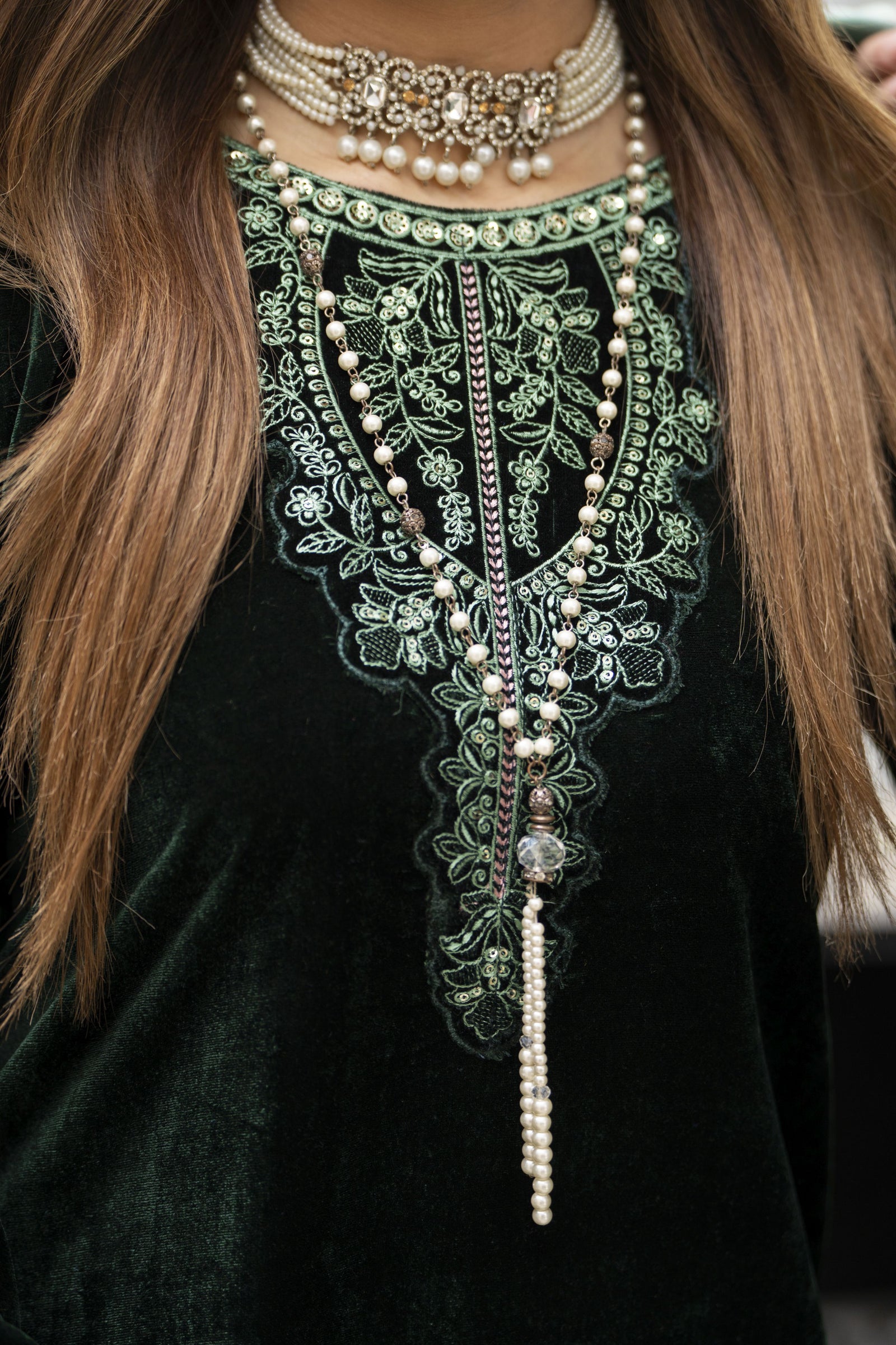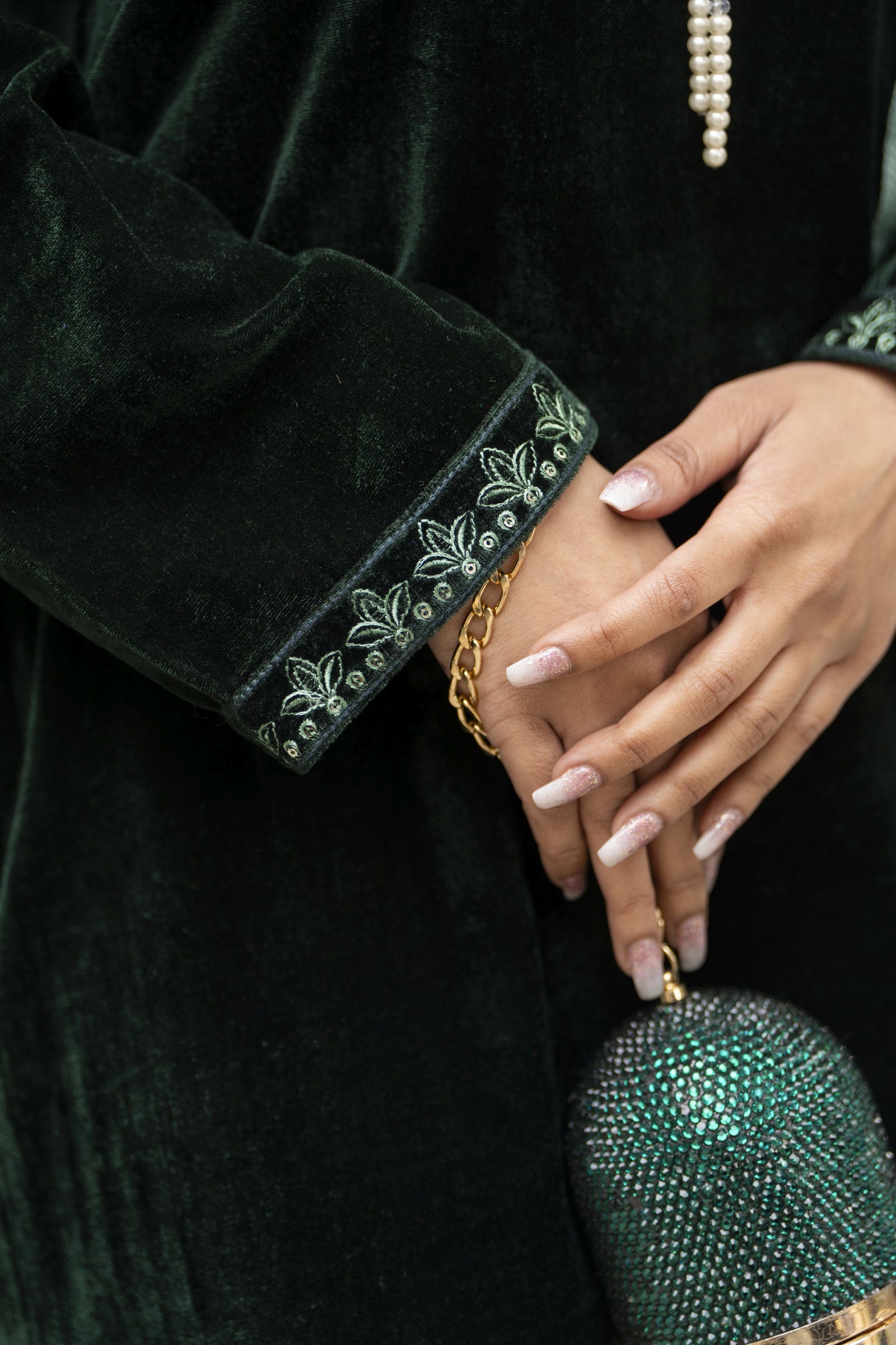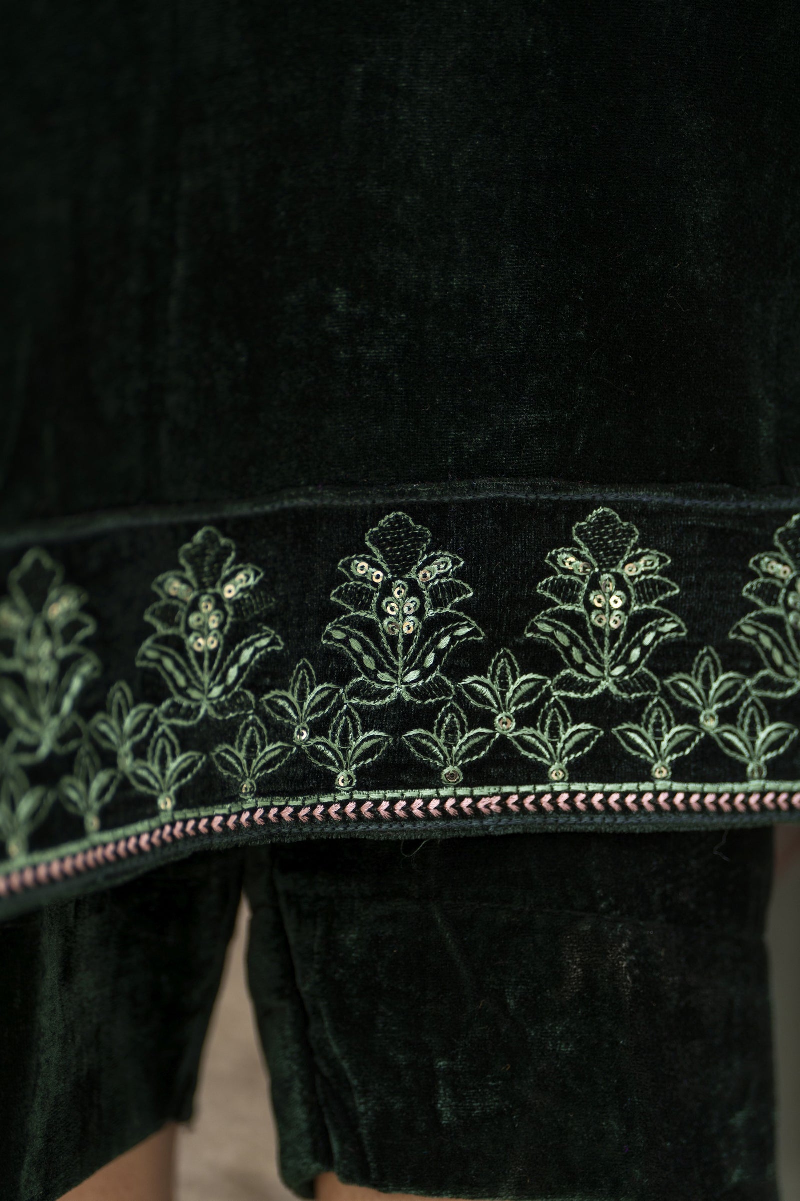 • Shirt: Velvet embroidered long shirt with refined detailing
