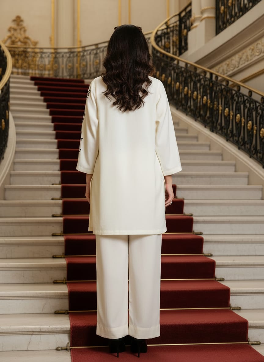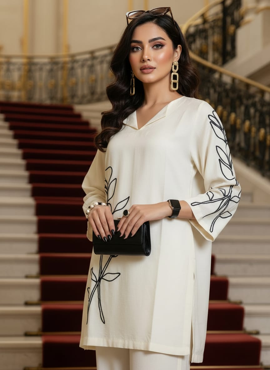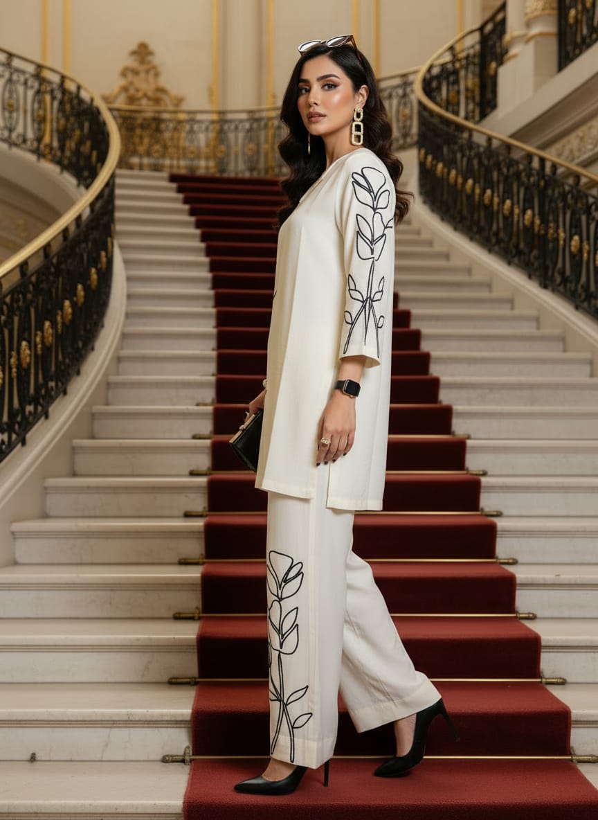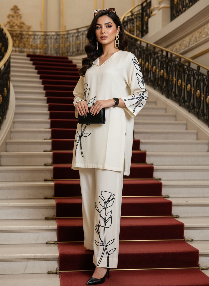 Add effortless sophistication to your everyday wardrobe with this 2-piece ready-to-wear linen co-ord set by Zaiwa. Designed with comfort and modern elegance in mind, this outfit features a relaxed-fit linen shirt paired with matching trousers, beautifully enhanced with minimal embroidered detailing for a refined, contemporary look.