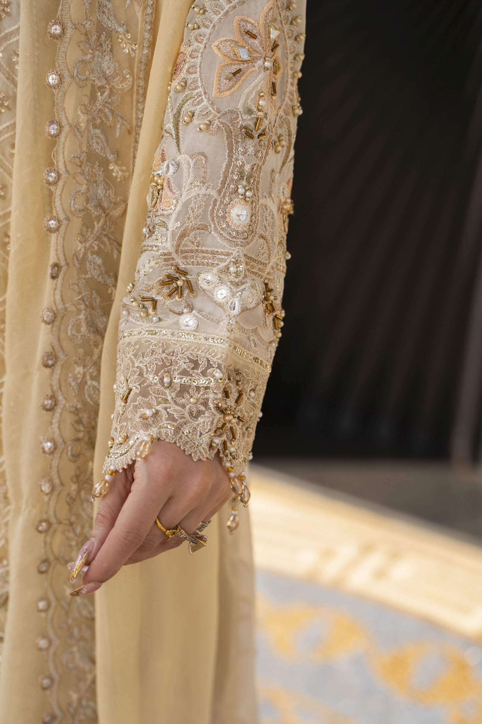 The look is completed with a chiffon embroidered dupatta that carries a light, flowy drape—perfect for weddings, engagement parties, dholkis and all festive occasions where sophistication is key.