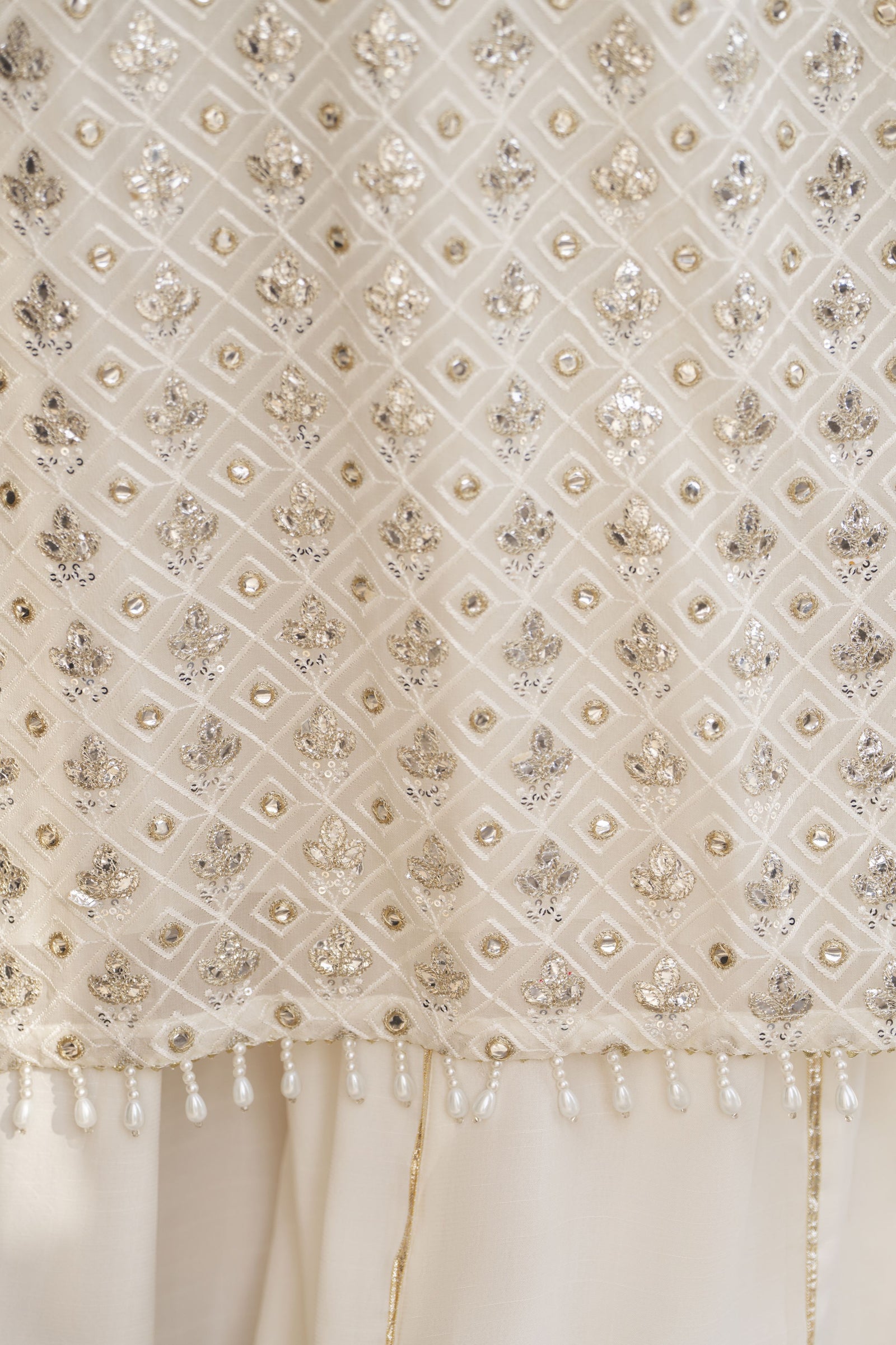 Chiffon embroidered shirt with detailed handwork & foil accents