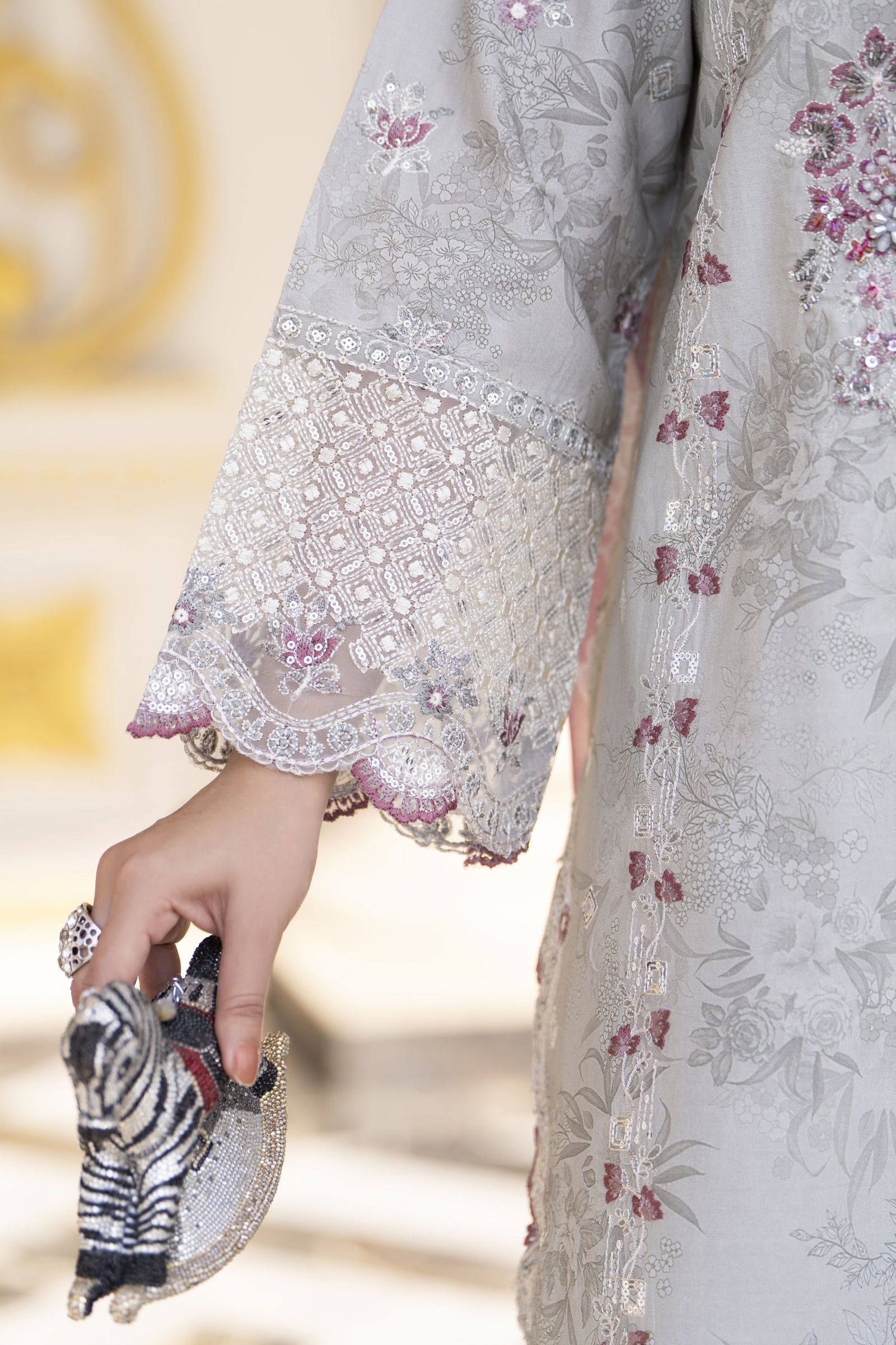 - Neckline: Hand-finished / embellished