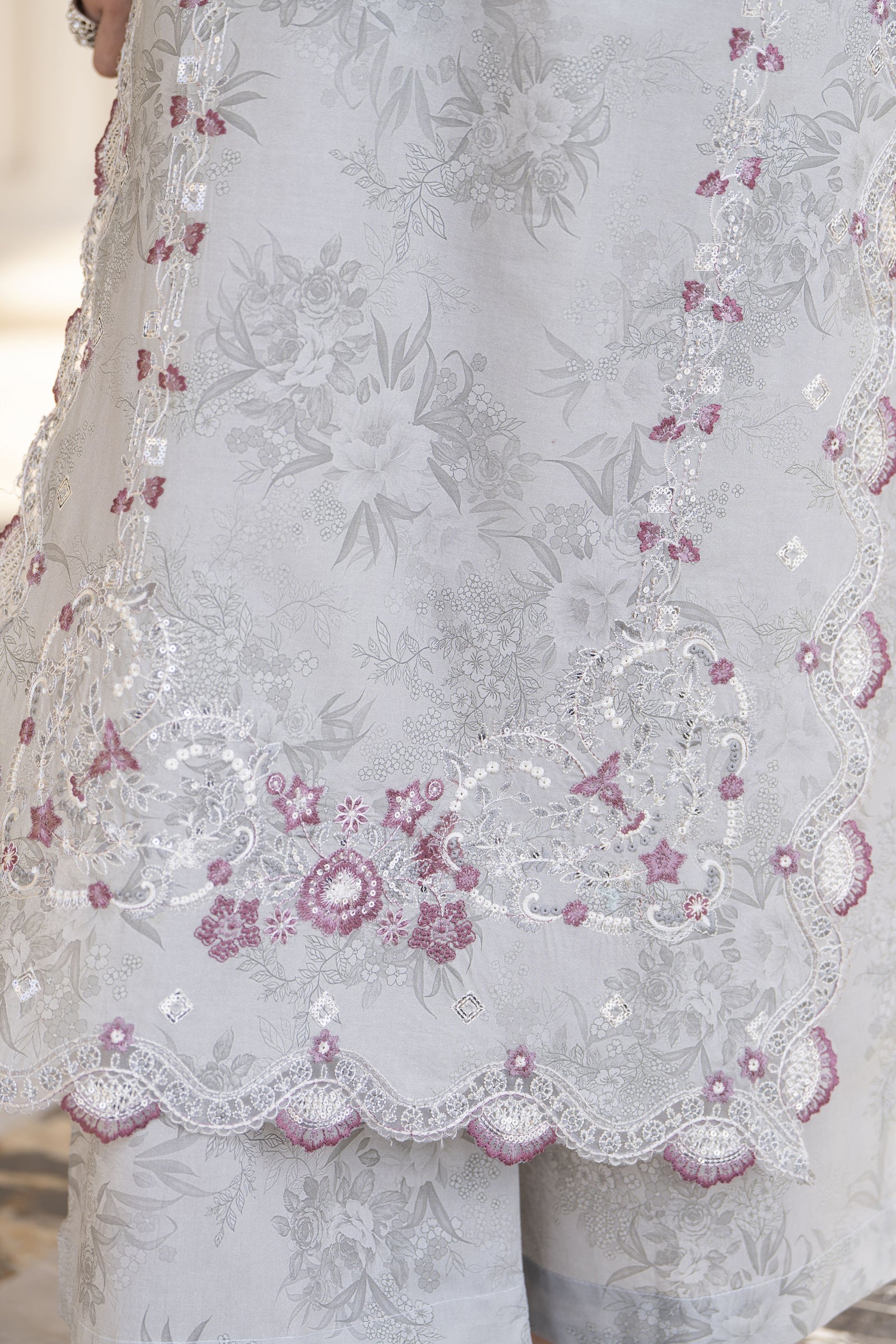 Elegant, refined, and effortlessly versatile — this grey outfit from Khushi by Silver is designed for those who appreciate understated luxury. Crafted in breathable cotton, this 3 piece Pakistani ready to wear suit features delicate thread and sequin embroidery that adds depth while maintaining a soft, sophisticated look.